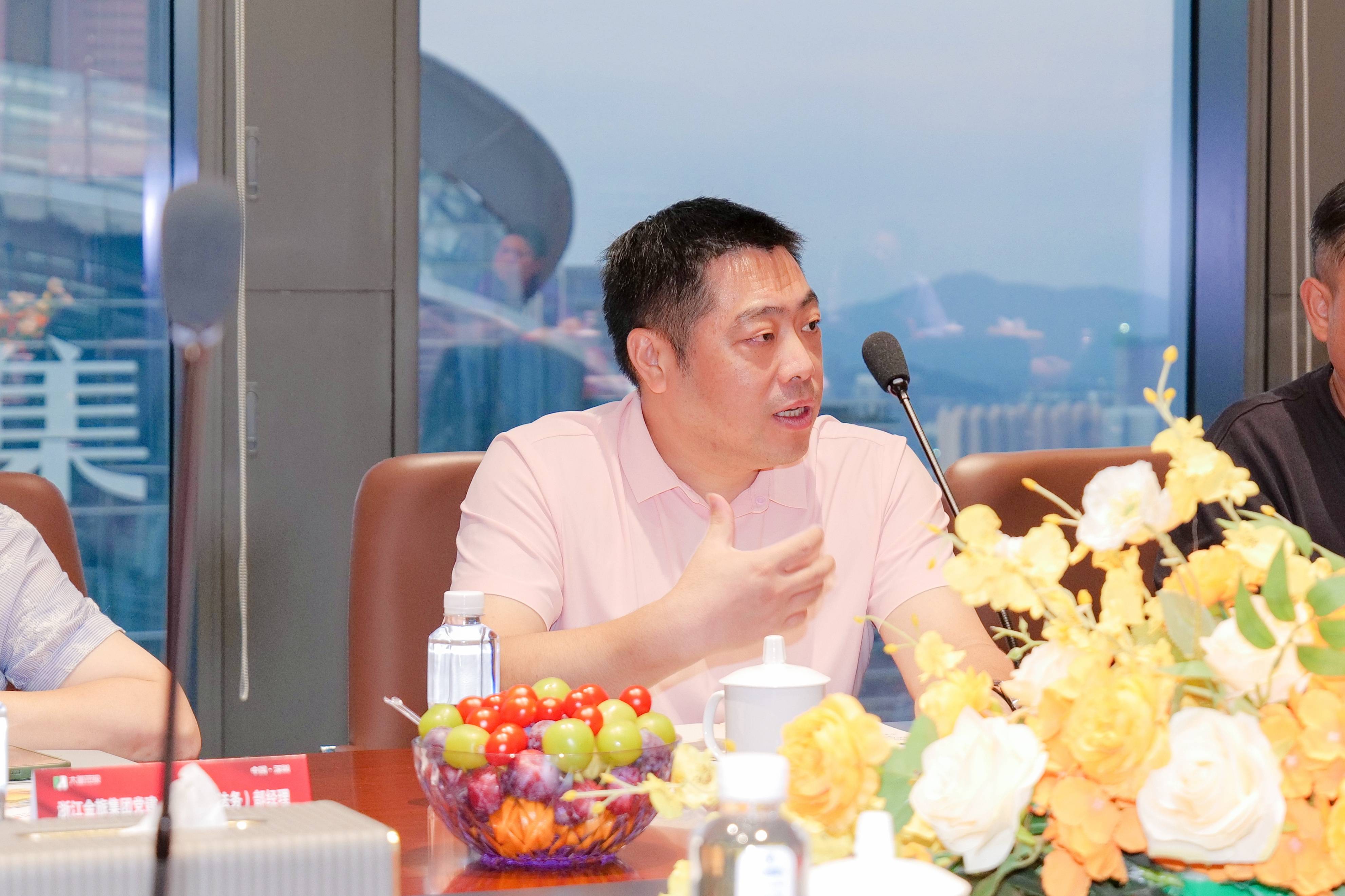 参观结束后,双方移步至集团会议室举行专题座谈会。此次会议不仅是双方企业的深度对话,更邀请到多位横跨“文旅运营、流量营销、产业投资”的行业代表参与,为合作方向提供多元视角:深圳网络直播行业协会会长肖泳、杭州华友置业及恒8连锁酒店董事长周忠军、趣旅行文化传媒董事长胡淇钧、文旅顶层流量设计总导演王三宝、新图文化传媒董事长胡敏、城市密码总经理李春、趣旅行运营总监胡英才等嘉宾悉数到场,共同为双方合作出谋划策。