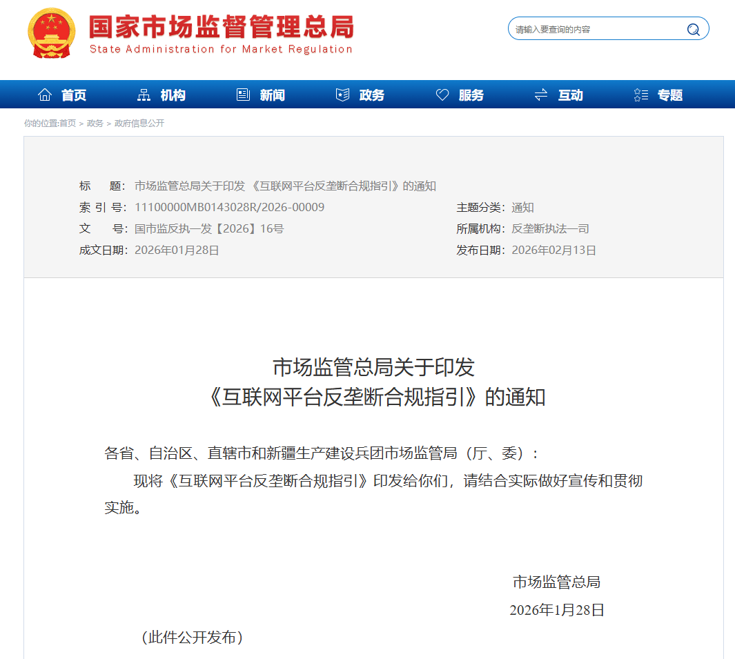 本指引是关于互联网平台的专项反垄断合规指引,旨在对平台经营者反垄断合规提供一般性指引,不具有强制性。